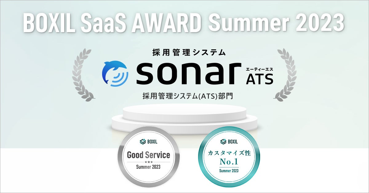 採用管理システムsonar ATS、「BOXIL SaaS AWARD Summer 2023」の採用管理システム(ATS)部門で「Good Service」「カスタマイズ性No.1」に選出
