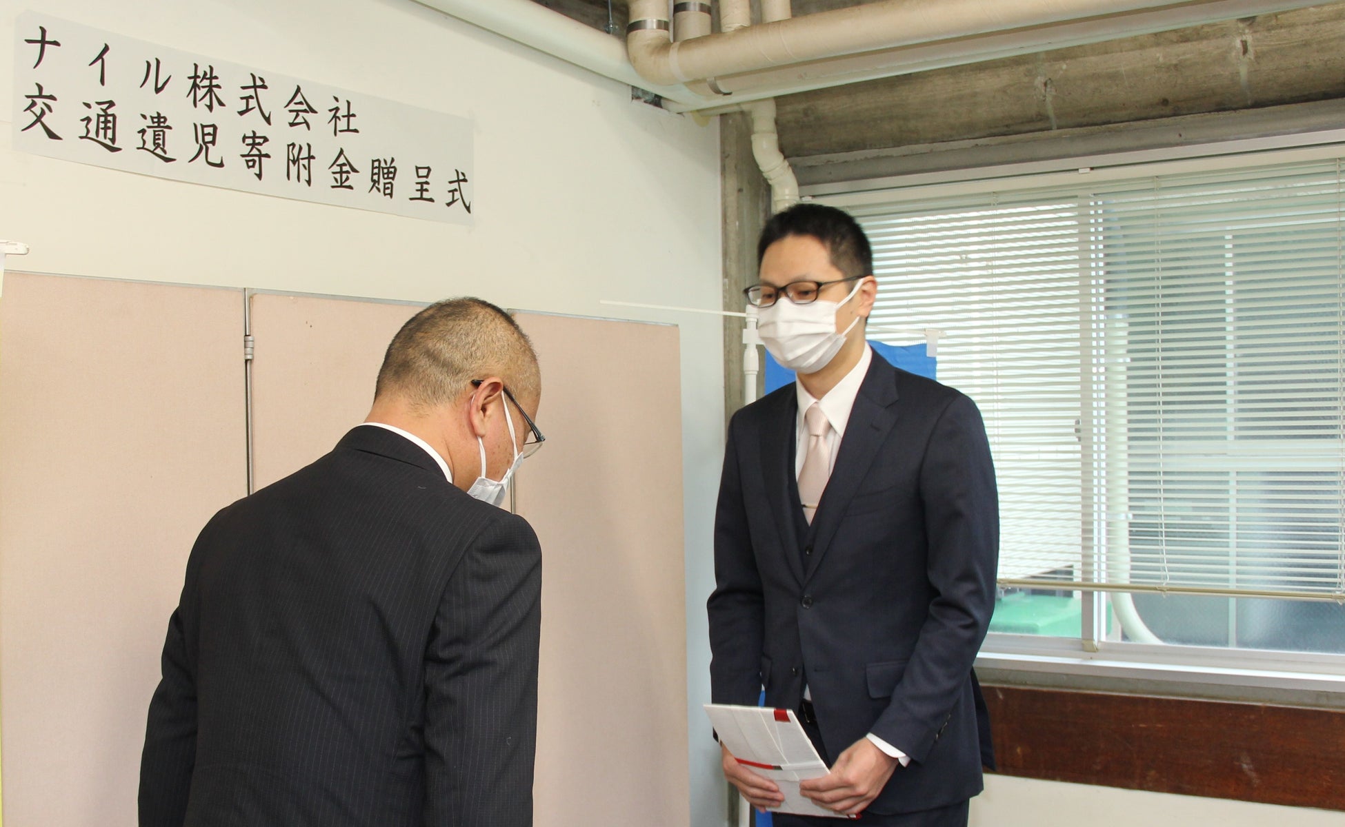 いただいたご寄付につきましては、県内の交通遺児の方々の入学・卒業の祝い金や、図書カード等の配布に効果的に使わせていただきたく思います。本当に寄附いただきまして、ありがとうございました。