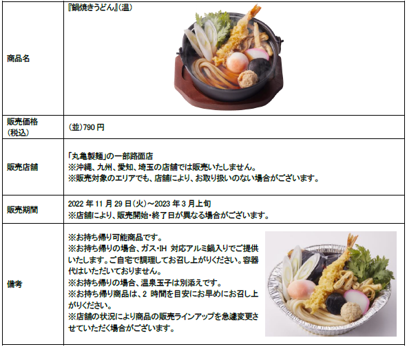 他、冬の代表格!これぞ熱々の『鍋焼きうどん』も販売 ~2022年11月29日(火)から丸亀製麺にて販売開始~