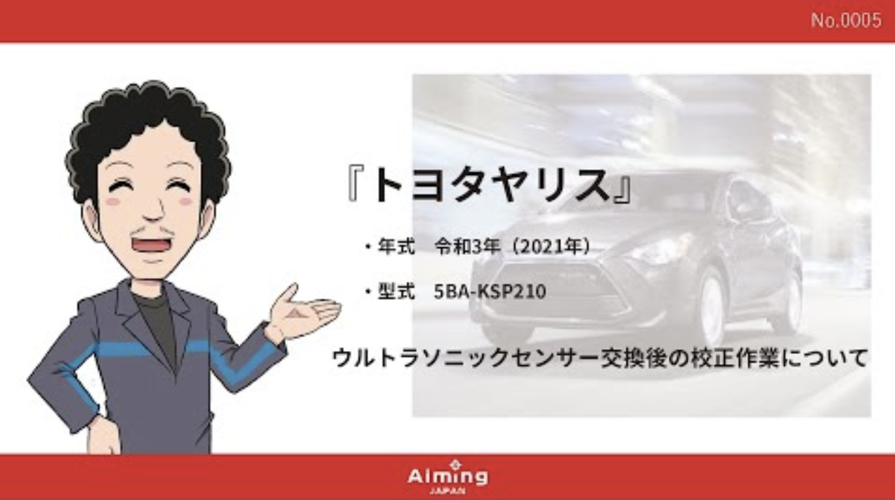 研修動画は90秒で作成されており、車両とカメラやレーダーなど作業ごとに方法や機器、注意点、整備マニュアルに即した作業の実施を説明している。