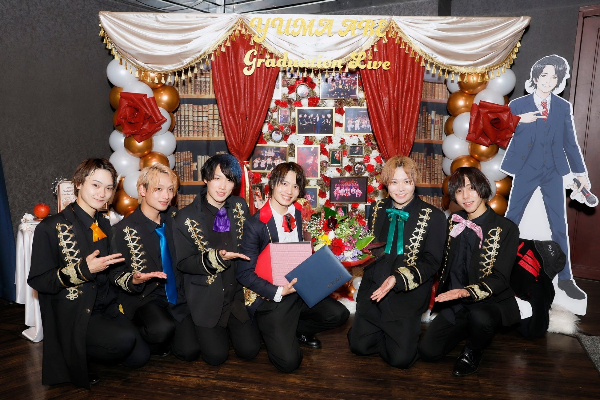 持ち前の軽やかなダンスと透明感のある歌声でファンを魅了していく阿部は、10年間にも及ぶアイドル経験を積みグループではセンターをつとめメンバーからの信頼も厚い。この日も一曲一曲を噛みしめながら全力のパフォーマンスを披露している姿が印象的であった。途中、阿部悠真より、実習生メンバー 本田唯生の正規生昇格とイメージカラー「ピンク」が発表され、プロデューサーとして最初の仕事となった。
