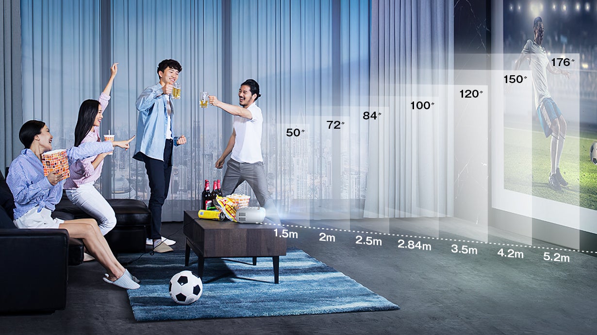 持ち運びが容易で、寝室やリビングなど設置場所を問わず使えます。自宅でも映画やスポーツ観戦を美しい大画面で楽しめるおすすめの家電です。