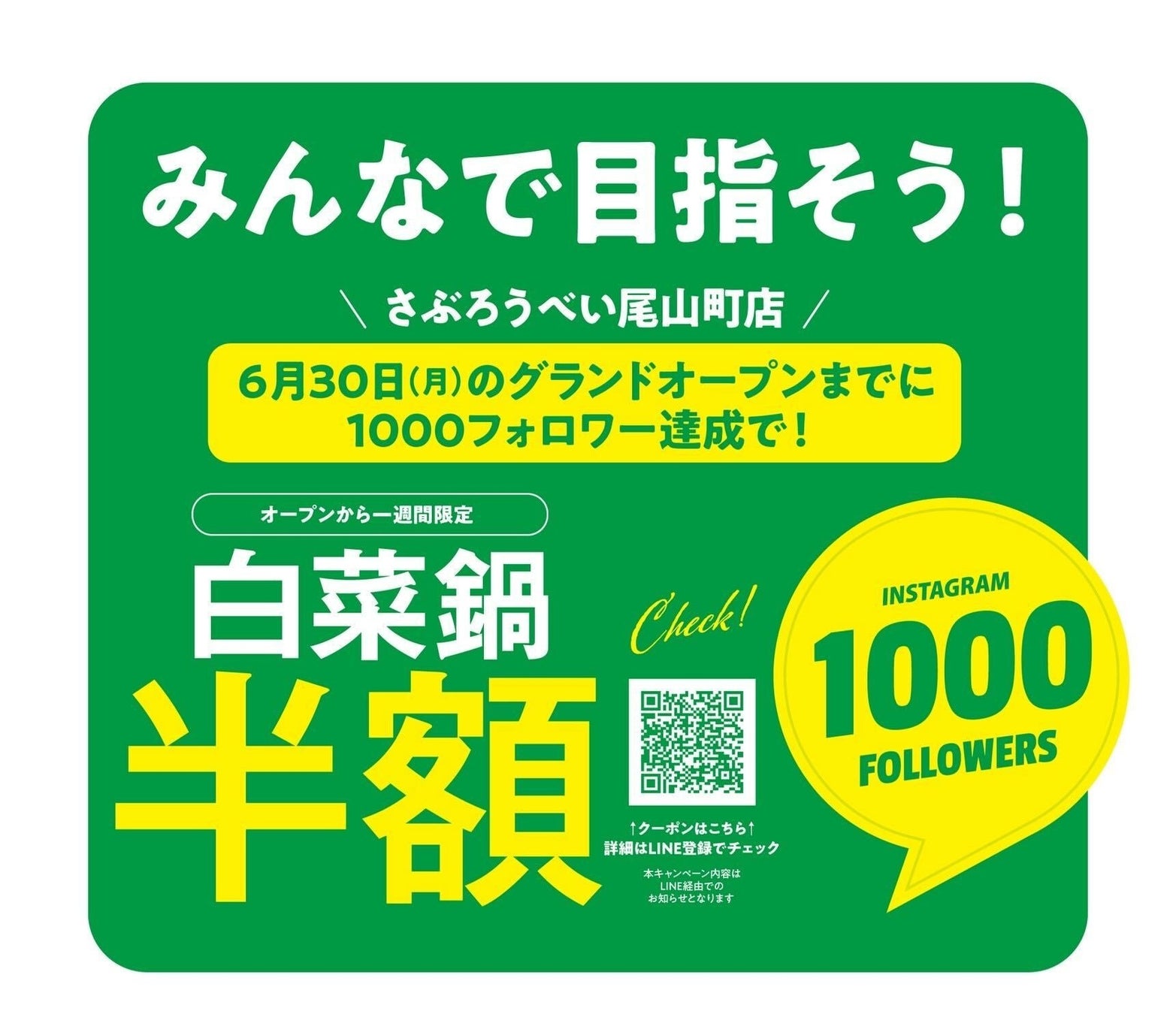 ◾️尾山町店のインスタグラムのフォロワー数 1,000人達成すると…