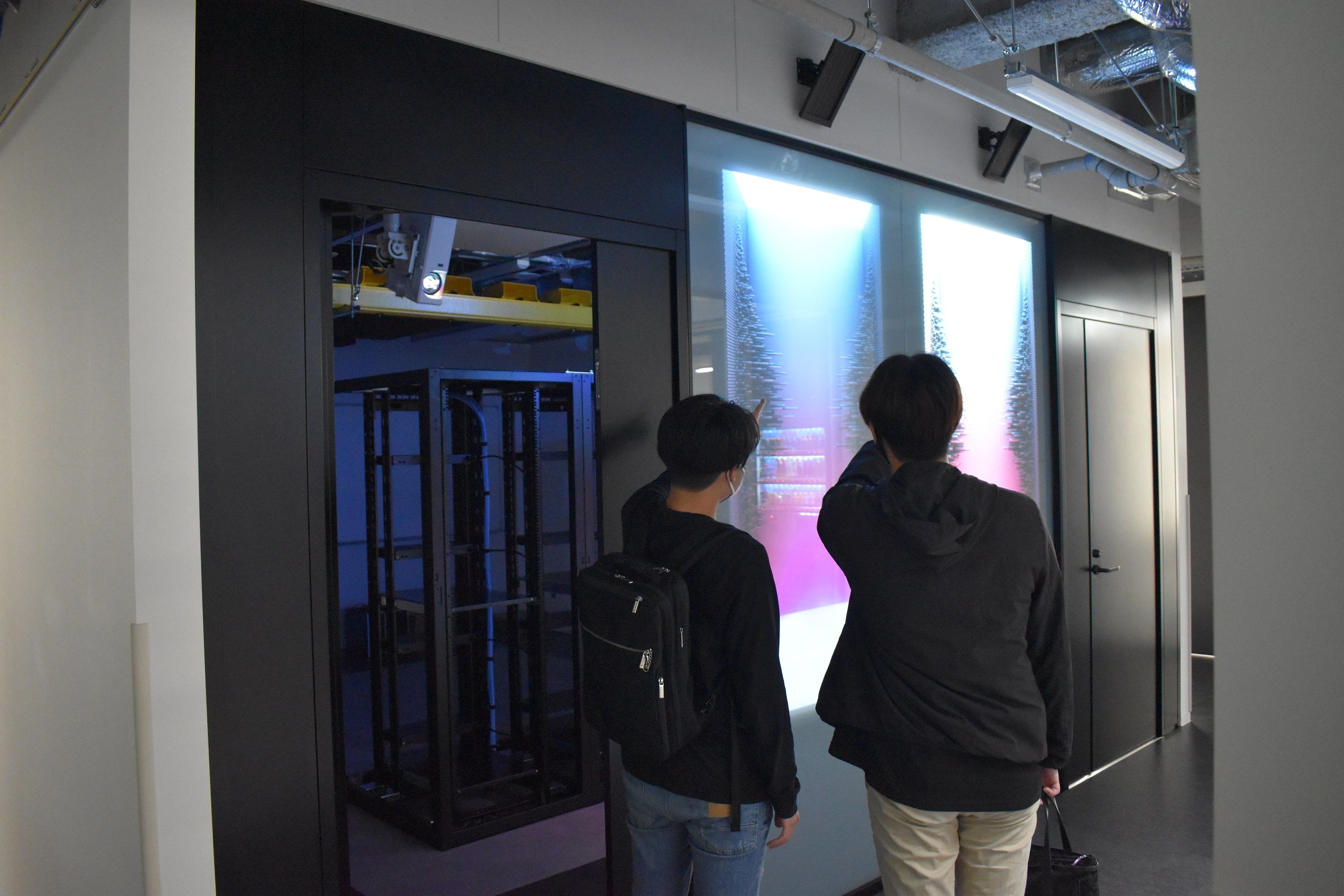 サーバルームはこれまでセキュリティなどの観点から建物の隅へ配置されることが多く、サーバルームとして必要な機能のみ実装されることが多かった。本学では校舎の”ど真ん中”にサーバルームを配置するとともにサーバルームの利用者や通りかかった人とインタラクションが行える仕組みを世界に先駆けて組み込んだインタラクティブサーバルームを開発した。今後、クラウドによりブラックボックス化しつつあるサーバやオペレーション技術への興味喚起やインタラクティブメディアなどの研究を行なっていく。