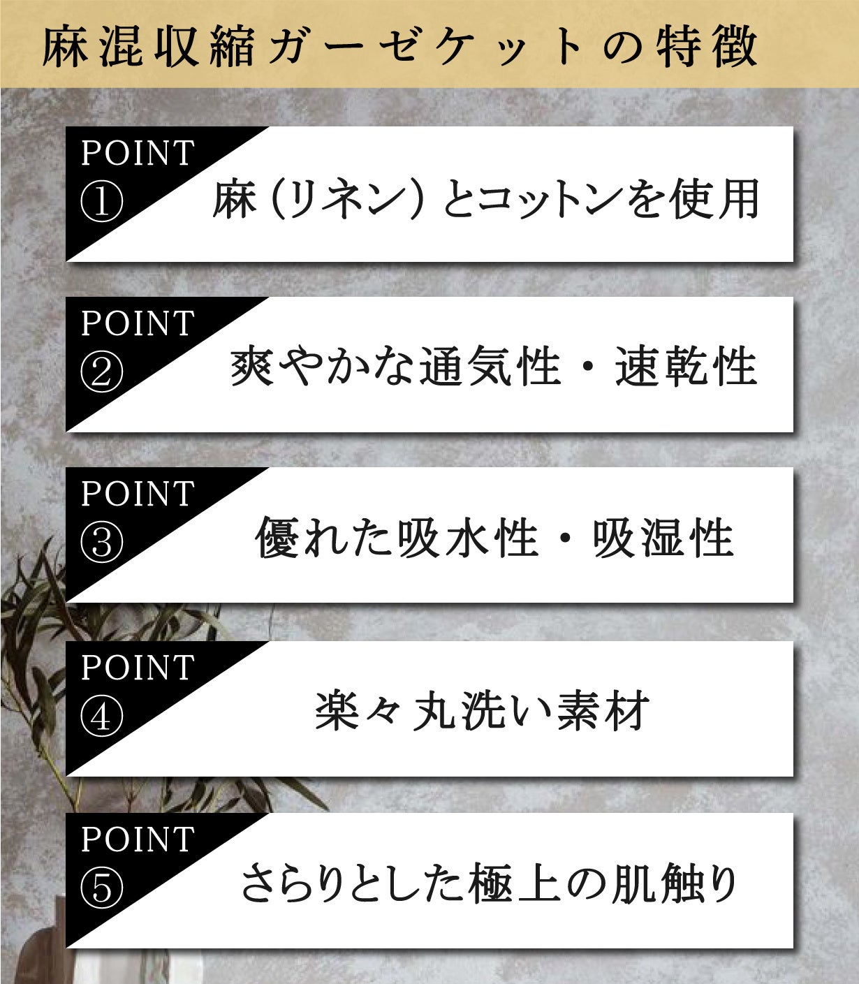 麻は吸湿・吸水性があり、通気性も抜群なので、さらっとした質感で何とも快適な使い心地です。