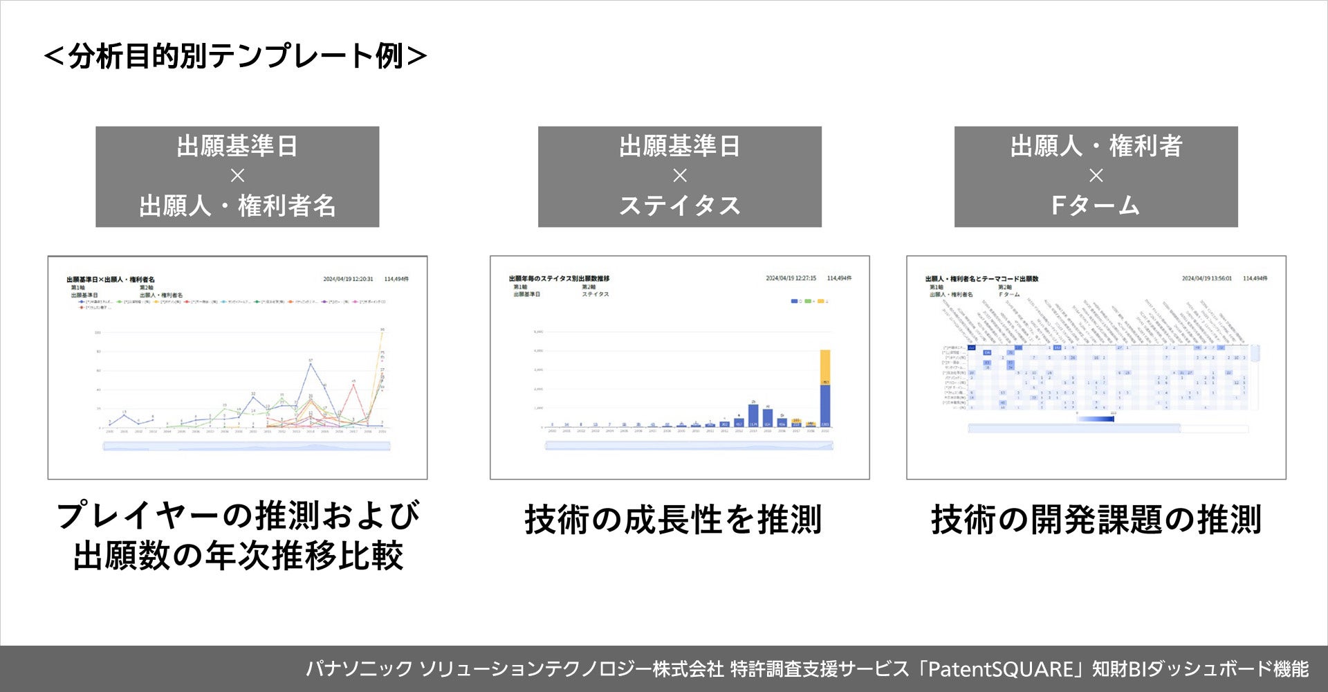 パナソニックの特許調査支援サービス「PatentSQUARE」が特許情報分析機能を強化。最大100万件の文献を対象に知財をBIで可視化する新機能「知財BIダッシュボード」をリリース