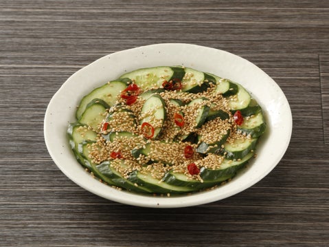 もんじゃが焼きあがるまでにおつまみとして楽しんでいただける、きゅうりのやみつき野菜カルパッチョです。
