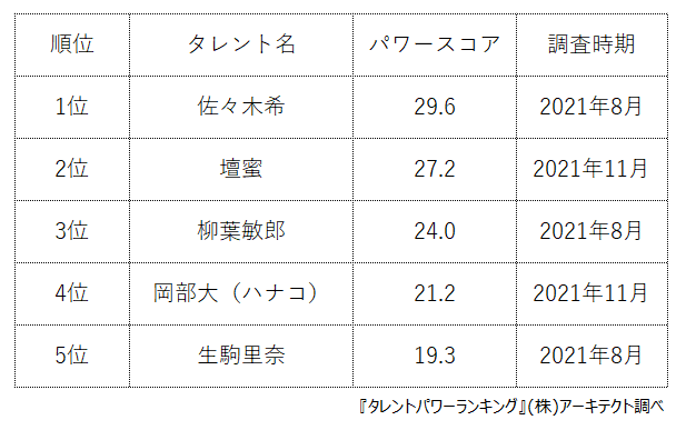 タレントパワーランキングは、株式会社アーキテクトが実施する業界最大規模のタレント(芸能人等有名人)調査結果をもとに、各タレントの有するパワーをリアルタイムにお届けします。