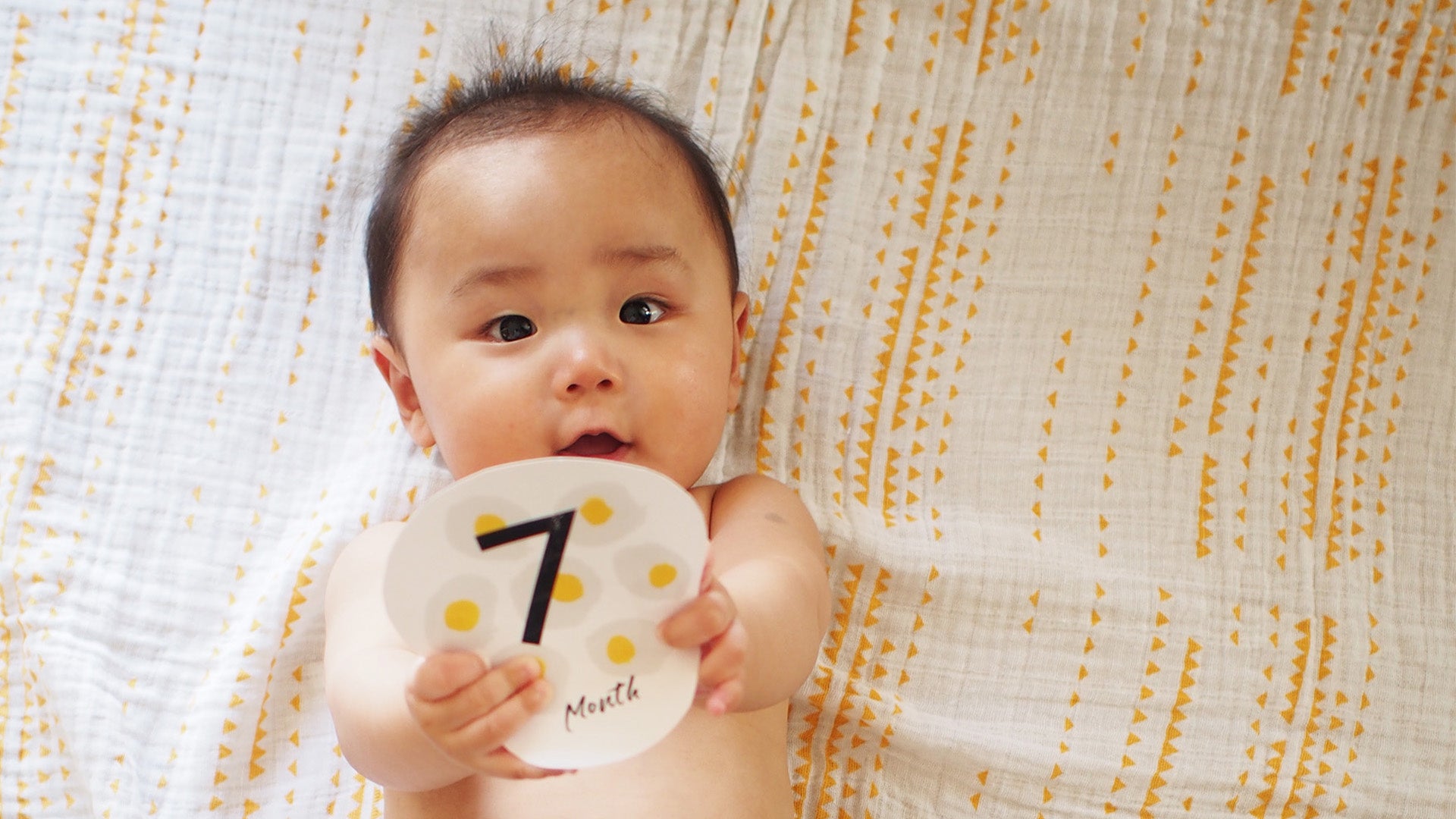 そんな想いを込めたこのセットは、お祝いの言葉に華やかなイラストを添えた出産祝い専用リーフレットと、お子さまの月齢にあわせて毎月撮影するときに使える、食材をモチーフにしたベビーマンスリーカードを添えてお届けいたします。