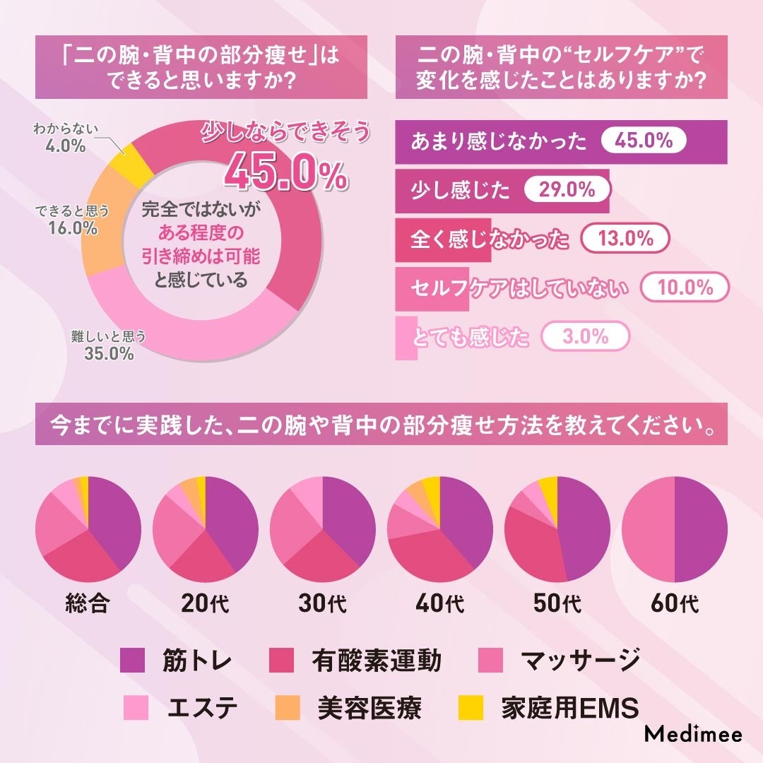 【「二の腕・背中の部分痩せ」はできると思いますか?/二の腕・背中のセルフケアで変化を感じたことはありますか?/今までに実践した、部分痩せ方法を教えてください】