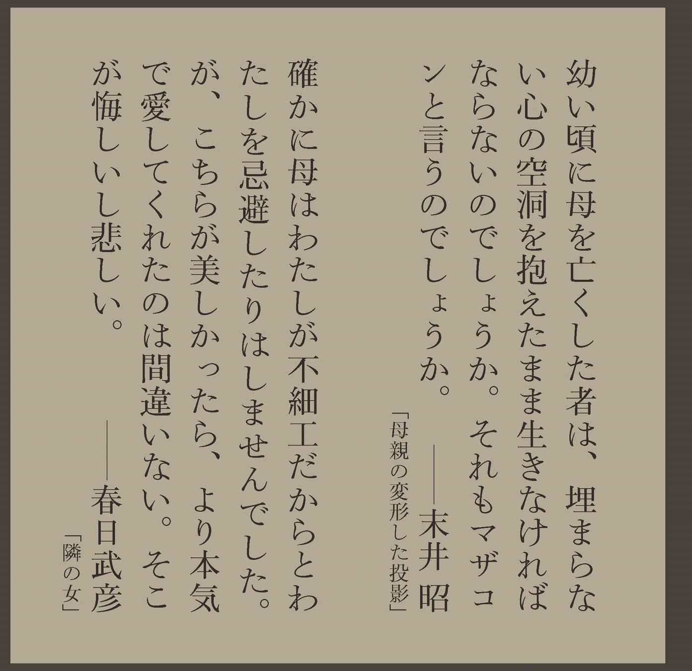 また作者2人は共同して「猫よ、母よ」(仮題)という曲を、末井が所属する特殊歌謡バンド、ペーソスで作り、3月21日、渋谷のロフト9にて、「猫コンプレックス母コンプレックス・ナイト」のライブで初公開する(ゲストに辛酸なめ子さんも登場)。母親の呪いを取り払うために、ジョン・レノンは「マザー」という曲を作り、プライマル・スクリームという手法でその解毒を試みたが、はたして特殊歌謡バンド、ペーソスは、どのように母の呪縛を解く歌を発表してくれるのか。期待が高まる。