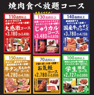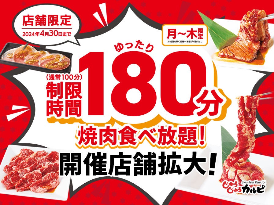 【180分間食べ放題】店舗拡大!焼肉じゅうじゅうカルビにて月~木曜日限定で食べ放題の利用時間を延長