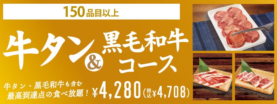 当店のメニューを全てお召し上がりいただけます。「牛タン」や「黒毛和牛」もたっぷり180分間、ご堪能いただけます。
