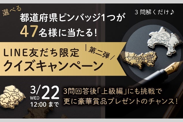 ■【LINE友だち限定】クイズキャンペーン第2弾を開催!「47都道府県ピンバッジ」が47名様に当たる!