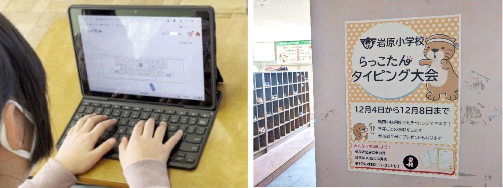 出展ブースでは「らっこたん」を体験いただくことが可能です。また、2023年12月25日 東京会場(新宿区)では、特別セッションにて「らっこたん」を導入いただいている南足柄市立岩原小学校の綱澤潤平先生より、「小学2年生からのタッチタイピングの指導方法」、「全校でのタイピング大会の様子と効果」などを踏まえた実践事例をお話しいただきます。