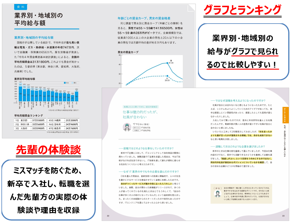 業界別・地域別の平均給与や、最高の会社を見つけるために使えるツールなど、仕事選びのために役立つデータも収録。Q&Aやケーススタディで企業選びの悩みにもしっかり答えます。