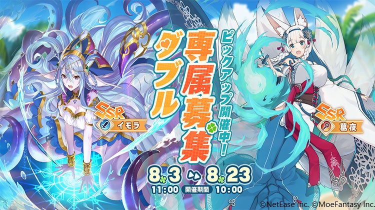 さらに、限定キャラクター「イモラ(SSR)」と「葛夜(SSR)」が手に入るダブルピックアップのガチャも登場! 期間限定ガチャのみで入手可能なキャラになっておりますので、この機会をお見逃しなく!
