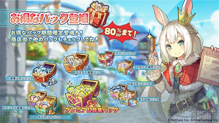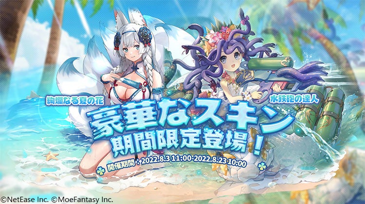 ほかにも、なんと最大80%OFFのお得なパックが期間限定販売されていたり、初回チャージ特典や豪華なスキン(リリーのスキン「水鉄砲の達人」、葛夜のスキン「絢爛なる夏の花」)などが期間限定で登場したりと、いまだけの豪華なキャンペーンが目白押し! こちらもあわせてチェックしてくださいね。