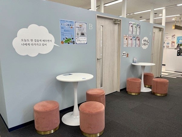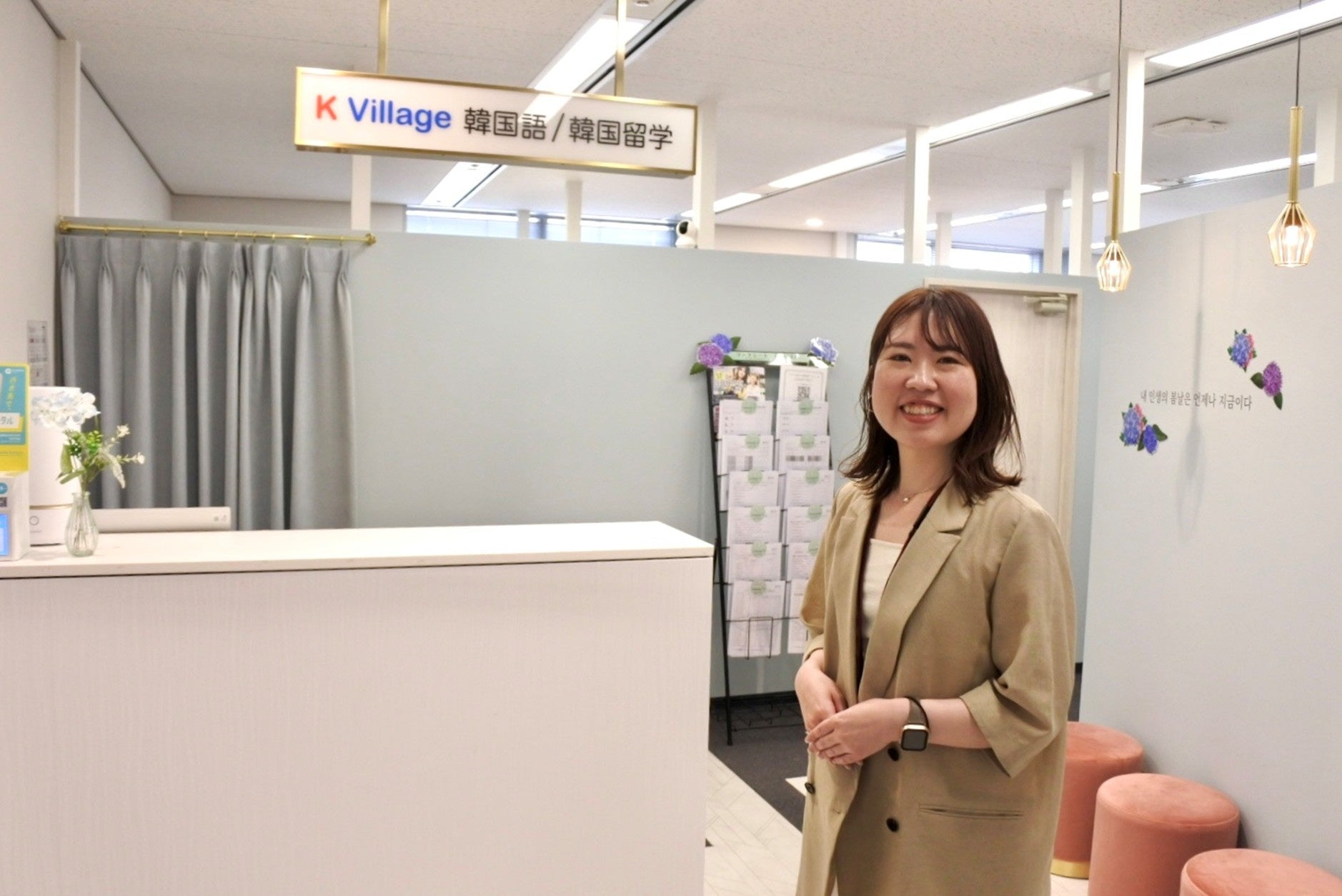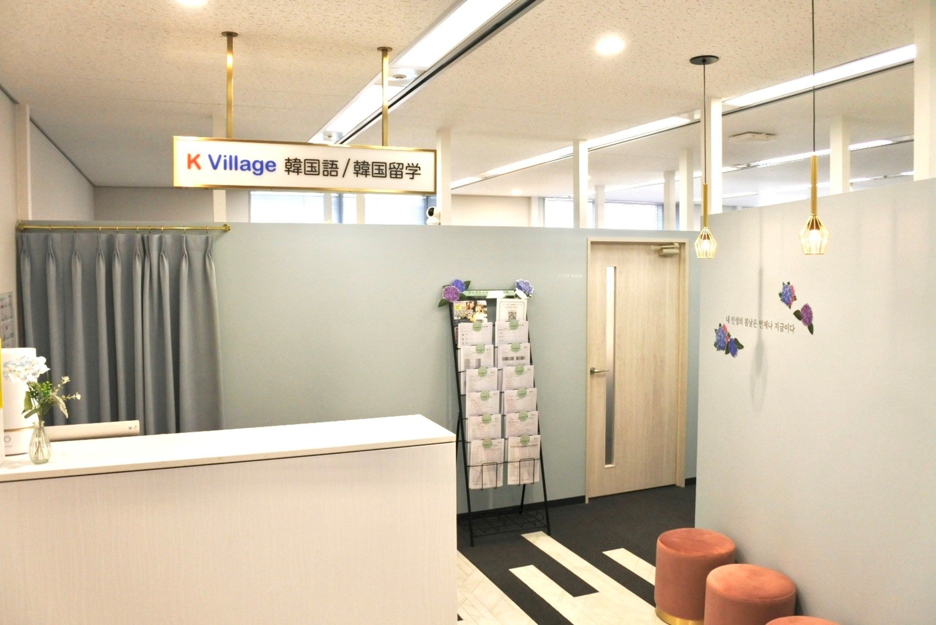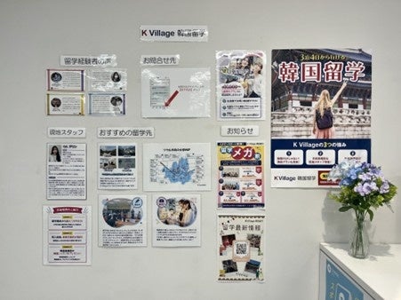 神戸三宮校では、K Village韓国留学の紹介スペースも用意し現地への短期・長期留学もサポートしています。