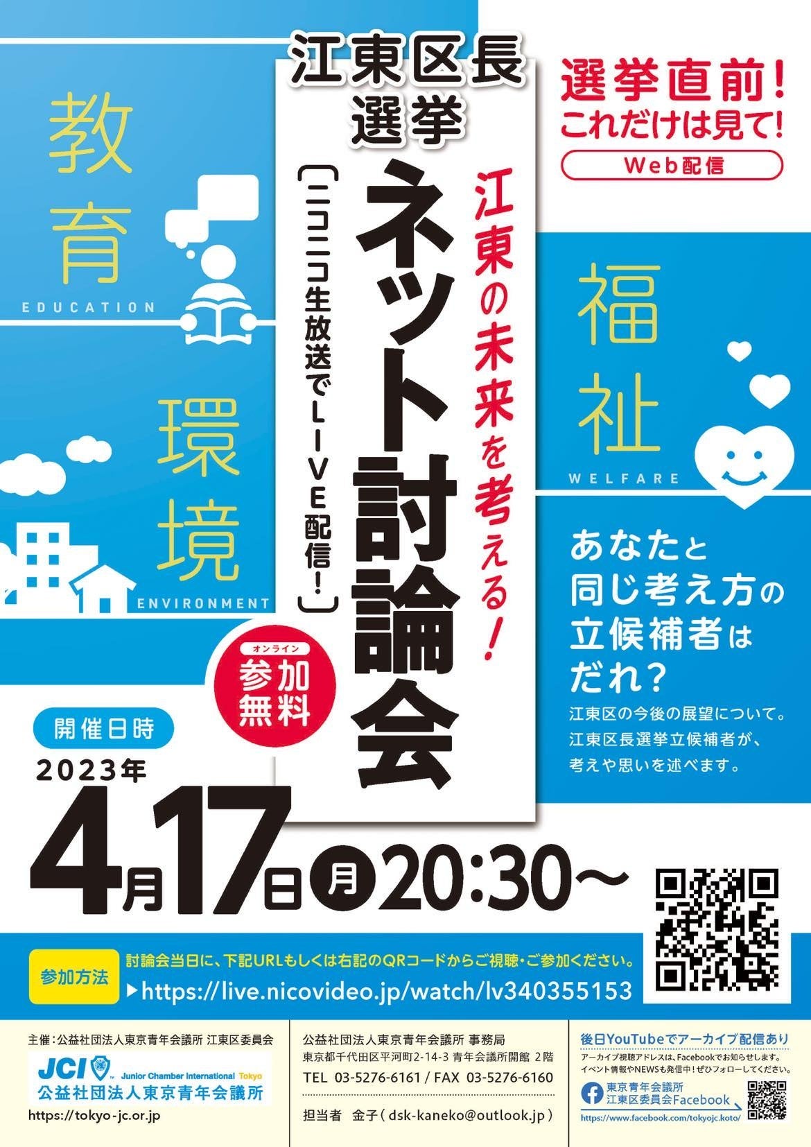 2023年 #江東区長選挙 #ネット討論会 【4月17日(月)20:30~ニコニコ生放送にて配信】
