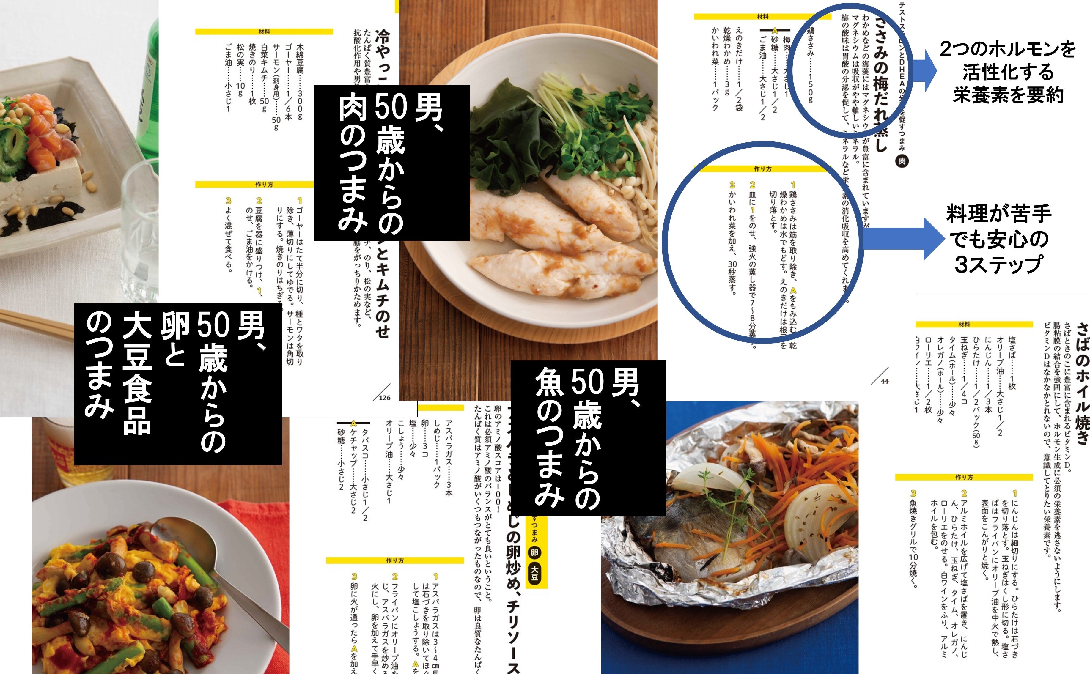 本書では、2つの男性ホルモンがどんな働きをしているのか、その要点を解説した上で、2つのホルモンを活性化する栄養素を豊富に含んだ、おいしいつまみをたっぷり紹介しています。