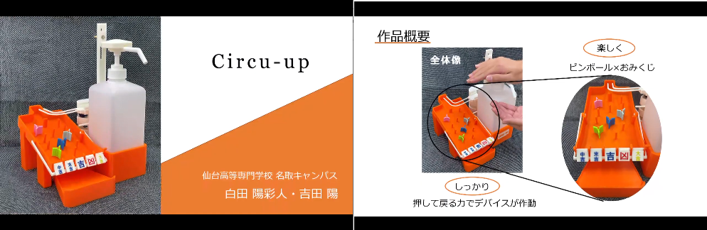 | 優秀賞 | 『Circu-up(サーキュ・アップ)』 | 仙台高等専門学校 名取キャンパス |
