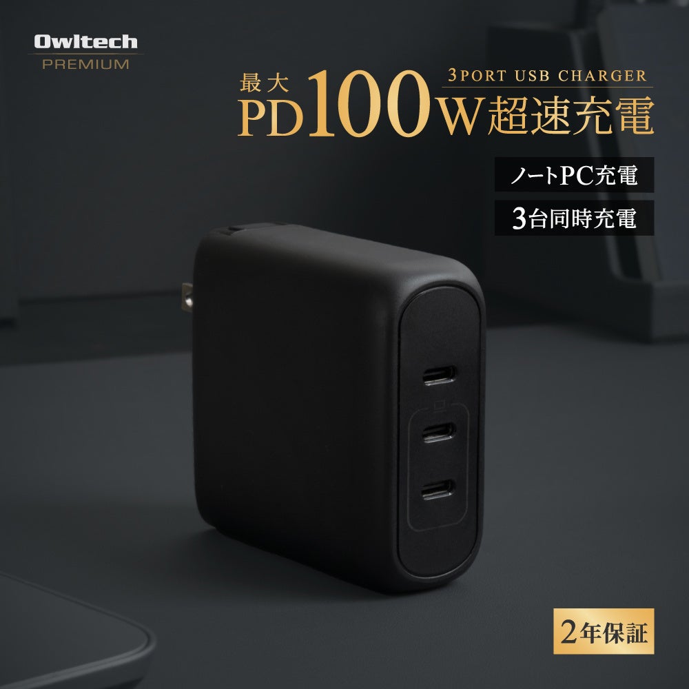 【最大PD 100W出力】コンパクトなのにUSB Type-C 3ポートで超速充電できる窒化ガリウムAC充電器を新発売