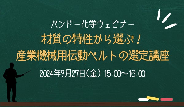 バンドー化学株式会社(本社:兵庫県神戸市)は、ウェビナー「材質の特性から選ぶ!産業機械用伝動ベルトの選定講座」を開催いたします。