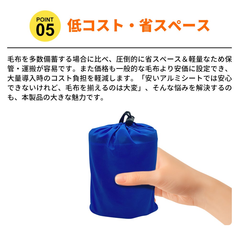 毛布のような保温性と、アルミシートのような軽さ・多用途性を融合した新しい非常用アイテムです。災害時の備えとしてはもちろん、日常やアウトドアなど幅広いシーンで活躍します。