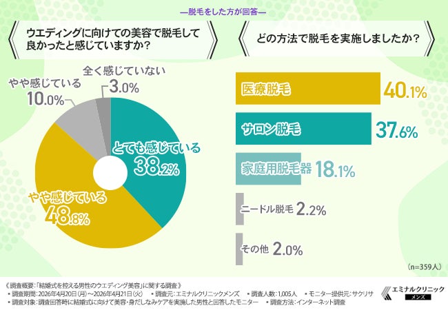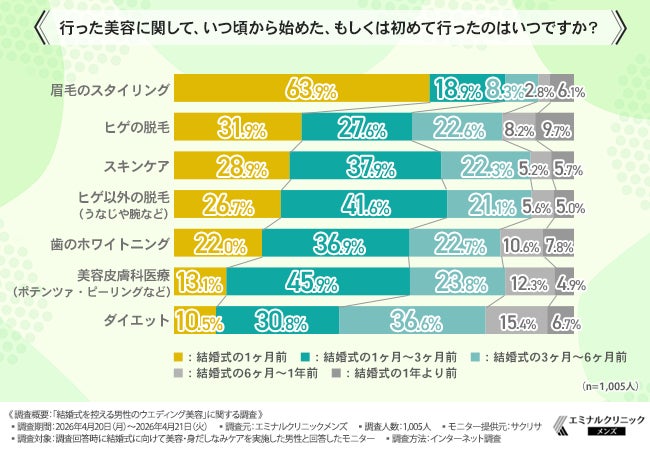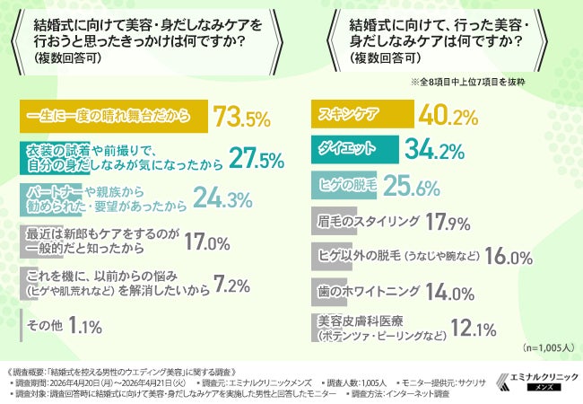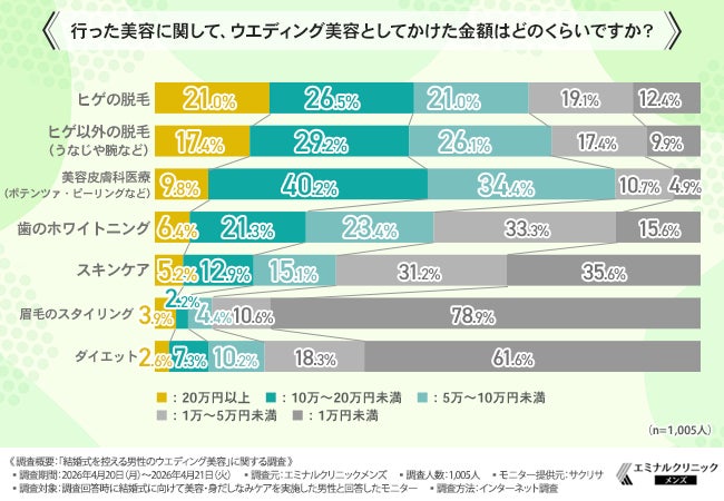 そこで今回、メンズ専用脱毛クリニック・エミナルクリニックメンズは、結婚式に向けて美容・身だしなみケアを実施した男性を対象に、「結婚式を控える男性のウエディング美容」に関する調査を実施しました。