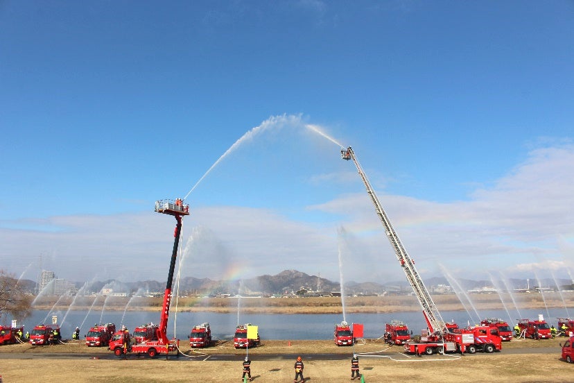 兵庫県加古川市(市長 岡田 康裕)の加古川市消防本部と消防団は、市民・事業者・消防機関が力を合わせ、安全・安心を確保する決意を新たに「消防出初め式」を開催します。恒例となっている出初め式では、制服を着用した消防職員・消防団員による行進や消防団員によるはしご乗り演技、消防車による一斉放水などが行われます。一級河川の加古川に向けて放水する模様は圧巻で、他では見られない加古川市ならではの式典です。毎年、市内外から多くの方が見学に来られます。