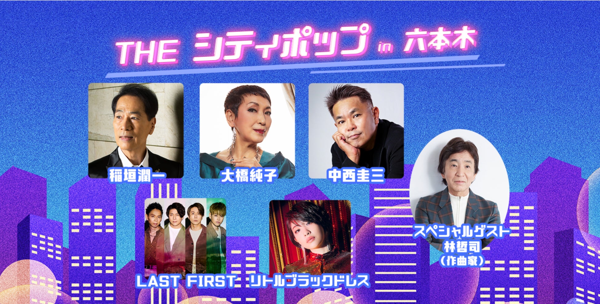 稲垣潤一、大橋純子、中西圭三、LAST FIRST(コーラス)、リトルブラックドレス、林哲司(スペシャルゲスト)出演の音楽イベント