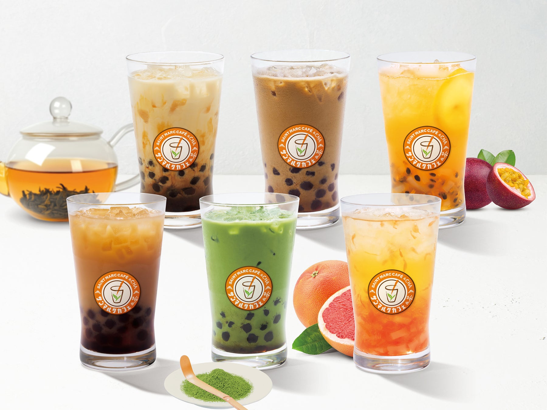 ドリンクメニューは、花の香りが特徴的な台湾の凍頂烏龍茶を使用した黒糖タピオカ入りのミルクティーや、ジャスミン茶をベースとしたフルーツティーなど計6商品が本ブランド限定メニューとして登場。ベースとなる凍頂烏龍茶、ジャスミン茶は、毎日店舗内でその日の分の茶葉を抽出することにより、常に新鮮で香り高いお茶を提供するほか、茶葉の量や抽出時間にもこだわりました。フードメニューは、「チョコクロ」で使用する生地を使い店内で焼き上げるオリジナルの「エッグタルト」や、サンマルクカフェの一部店舗で販売する抹茶を使用したパフェやフレンチトーストなどを販売いたします。