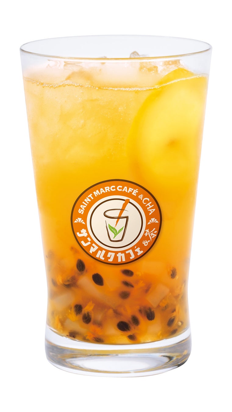 ジャスミンの甘く華やかな香りと、フルーツの爽やかさが相性抜群。 見た目華やかなレモンに、パッションフルーツとナタデココで様々な食感をお楽しみいただけます。
