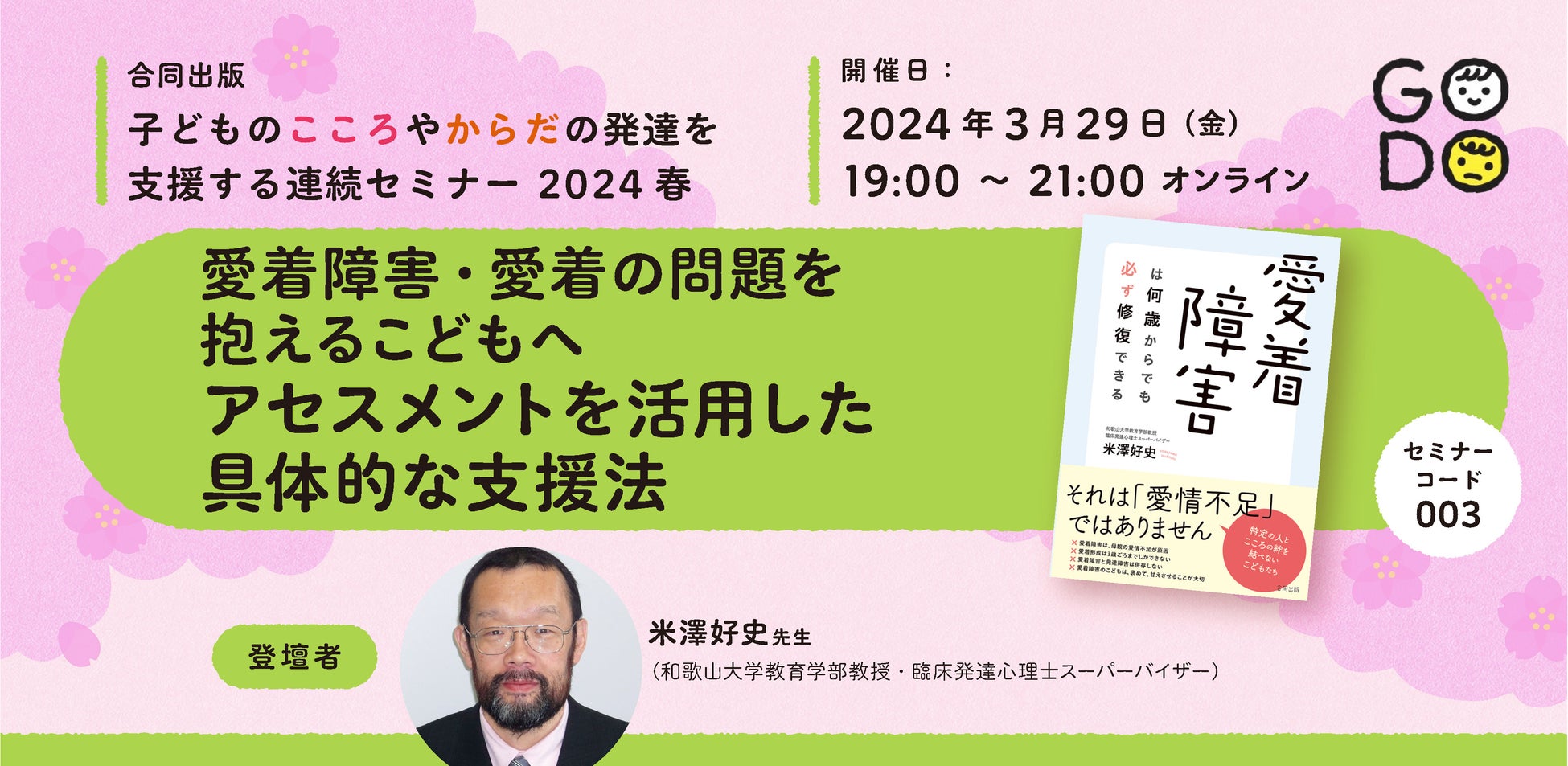 セミナーコード003「愛着障害・愛着の問題を抱えるこどもへ アセスメントを活用した具体的な支援法」