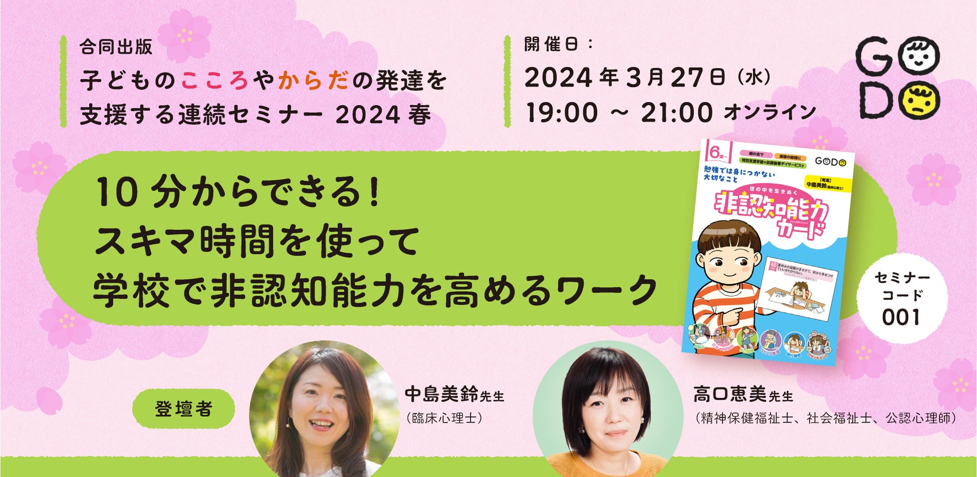合同出版 子どものこころやからだの発達を支援する 連続セミナー2024春 新学期に向けて子どもが輝く支援を伝授! 特別支援教育・療育・保育の現場で、すぐ役立つ知識や支援のポイントを、最前線で活躍する講師陣がお届けします。みなさまの参加をお待ちしております。