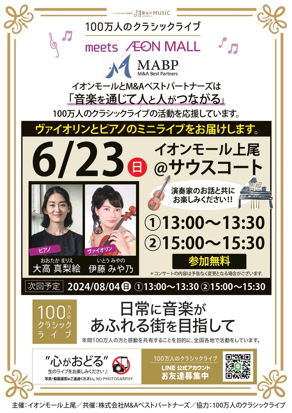 【M&Aベストパートナーズ×イオンモール上尾】6月23日(日)にクラシックライブを開催!