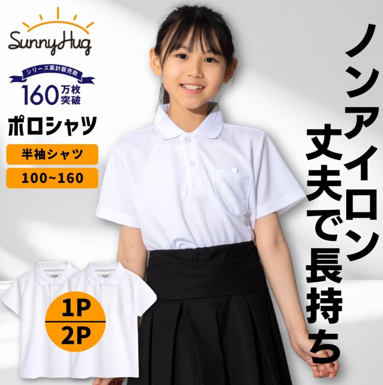 SunnyHugの半袖スクールポロシャツは、親御さんの声を元に毛玉ができにくい素材に改良しました。専門機関のピリング(毛玉)試験において高ランクの5級を取得しました!毛玉が出来づらく、長い期間でご着用頂けるよう改良したこだわりのスクールポロシャツとなっております。綿のような柔らかな肌触りと汗をかいてもサラサラ感が続く吸汗速乾性を両立した特別な鹿の子生地を採用しております。お洗濯の乾きが早くしわになりにくい吸水速乾性でお洗濯をラクにする機能面にもこだわったスクールポロとなっております。
