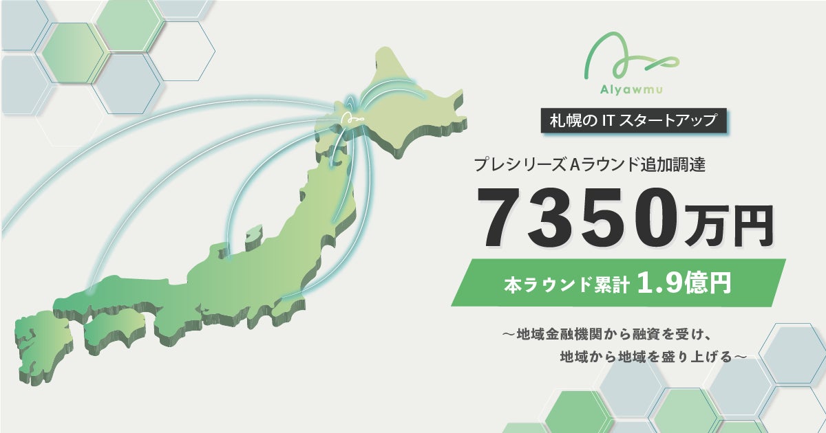 株式会社あるやうむ(北海道札幌市/代表取締役:畠中 博晶/以下 あるやうむ)は、「プレシリーズAエクステンションラウンド」として7,350万円の追加調達を実施いたしました。2024年5月の資金調達と合わせて総額1億9,050万円になります。今回の調達は、北見信用金庫、北海道信用金庫、北海道銀行、北陸銀行、日本政策金融公庫から合計4,400万円の融資を、ユナイテッド株式会社、フュージョン株式会社、株式会社スタートアップコネクト、他、個人投資家からの出資であります。どちらも無担保、代表者の連帯保証なしでの資金調達となります。