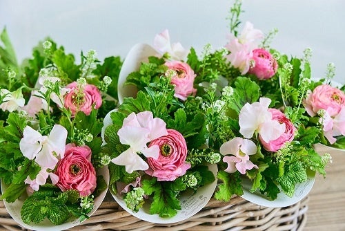 季節の花を中心に束ねた、日々の暮らしに取り入れやすい小さなブーケ。花瓶やグラスに飾れば簡単に「花のある生活」を楽しめます。 ※画像はキッチンブーケ。