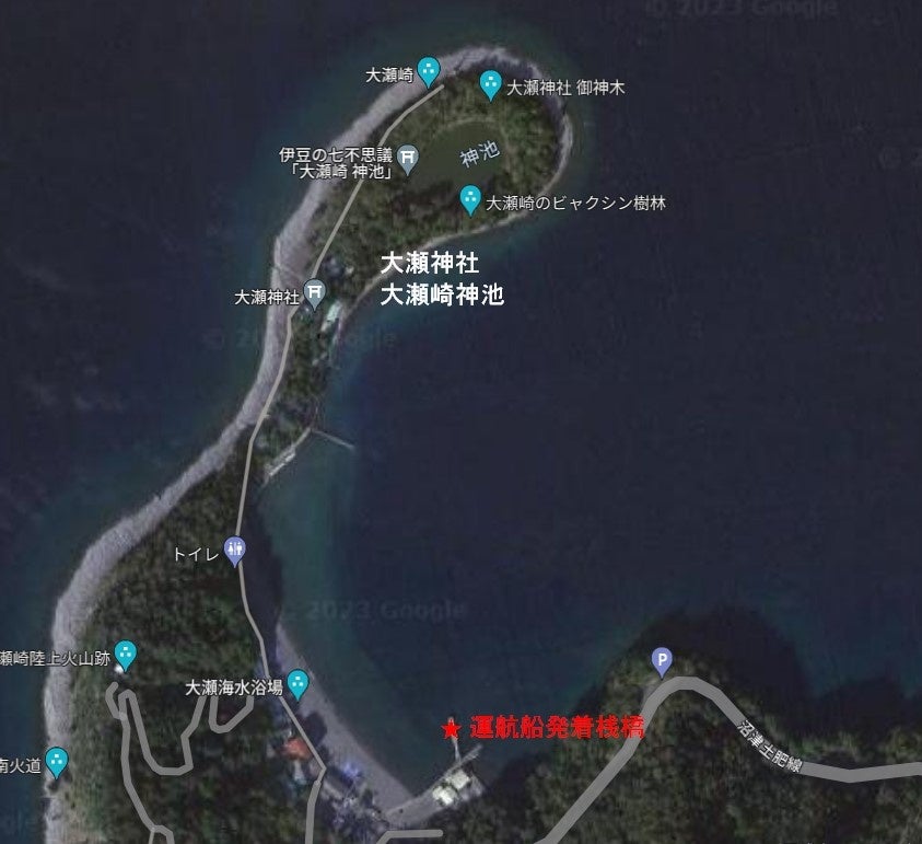 桟橋→大瀬神社→大瀬崎神池→ビャクシン樹林→桟橋
