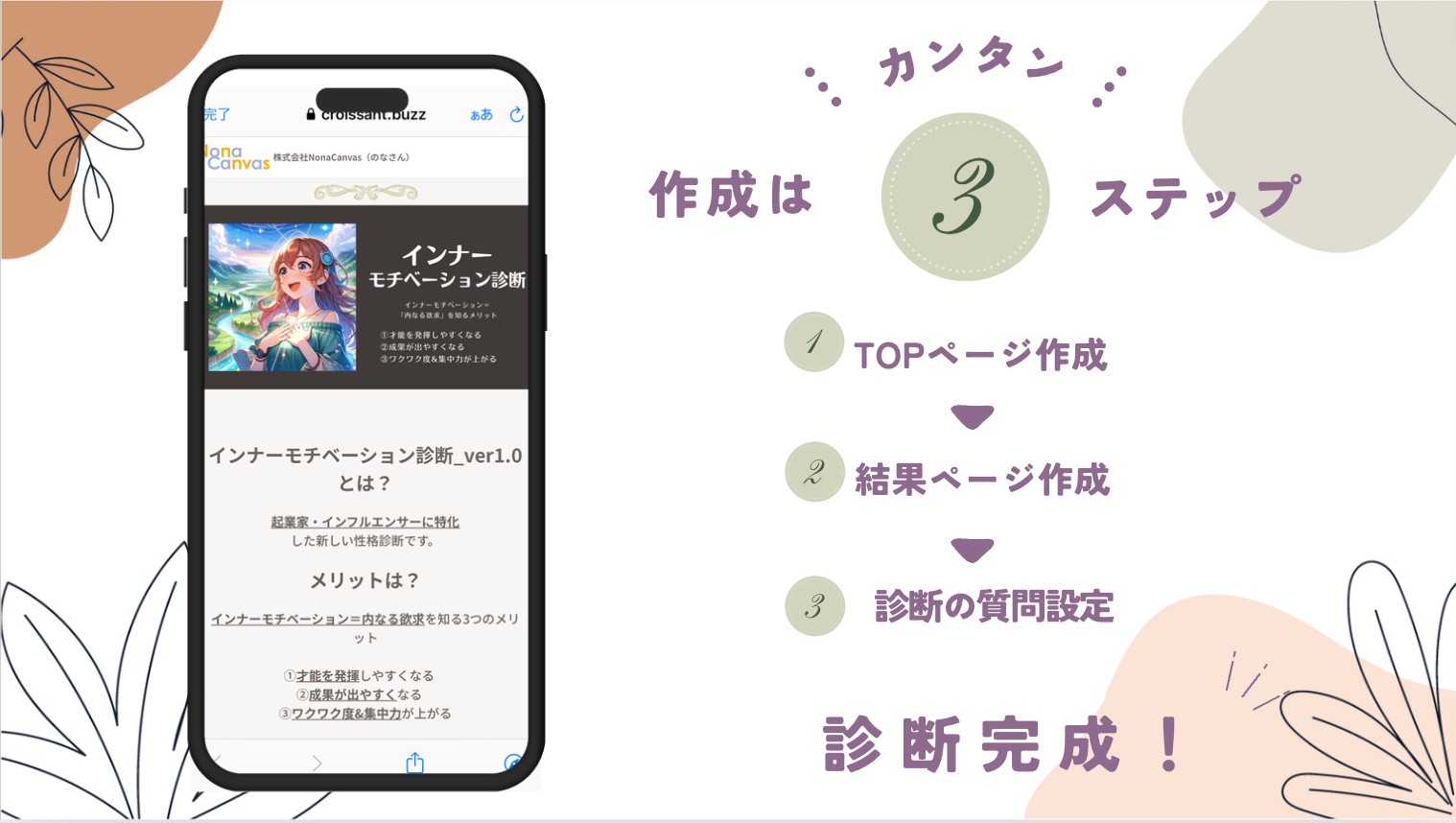〜〜オリジナルで考案した診断をクロワッサンで簡単制作リリース〜〜