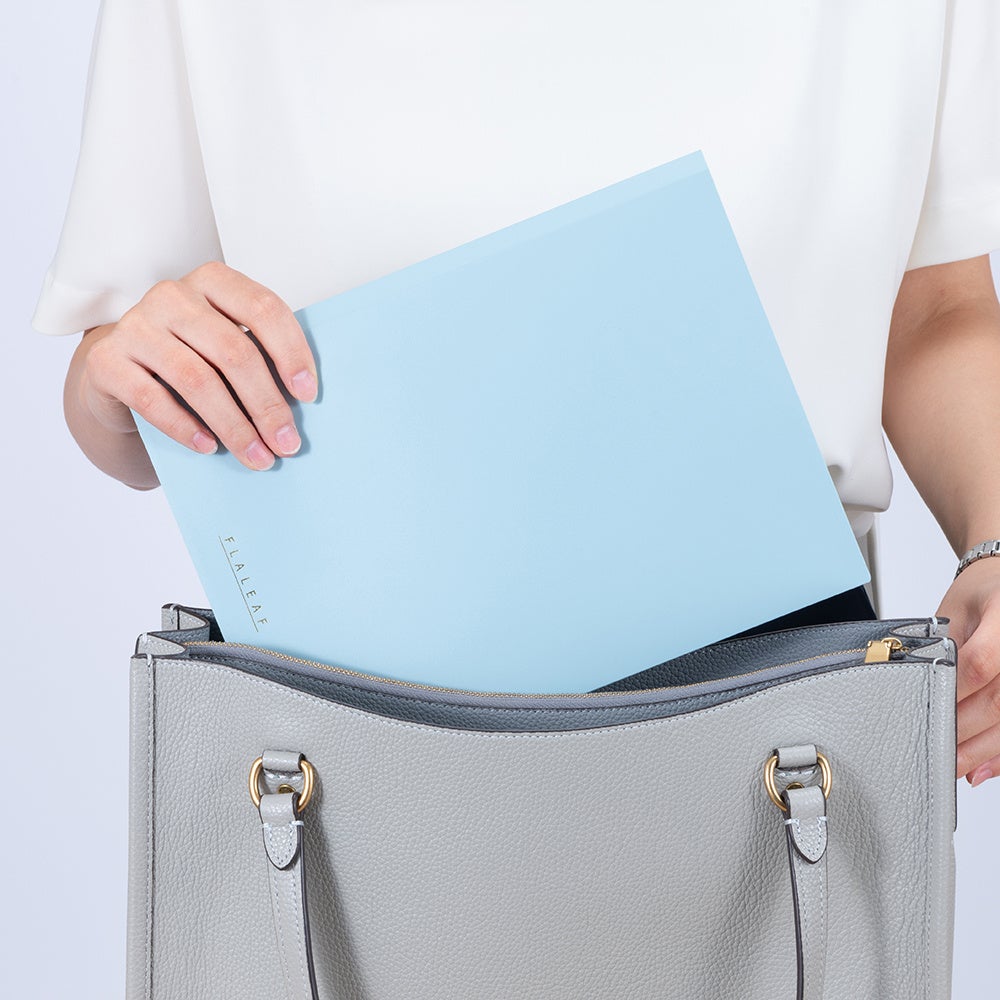 超薄型綴具によりページの端まで心地よく書くことができることに加え、収納枚数に合った背幅での持ち運びが可能です。かさばらないので、ノート感覚でスマートに持ち運ぶことができます。