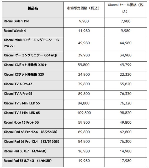 小米技術日本株式会社(以下「シャオミ・ジャパン」、本社:東京都港区、取締役社長:大沼 彰)は、スマートフォンやタブレット、ロボット掃除機、チューナーレススマートテレビなどを対象とするブラックフライデーを11月21日(木)より順次開始します。