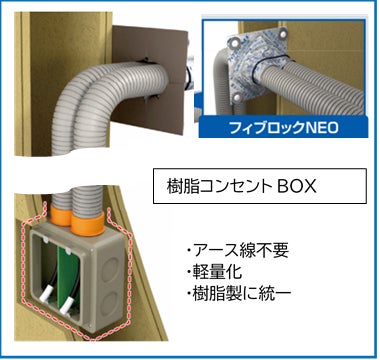 <フィブロックNEO PF管・ケーブル貫通用(コンセントボックス)の詳細はこちら>