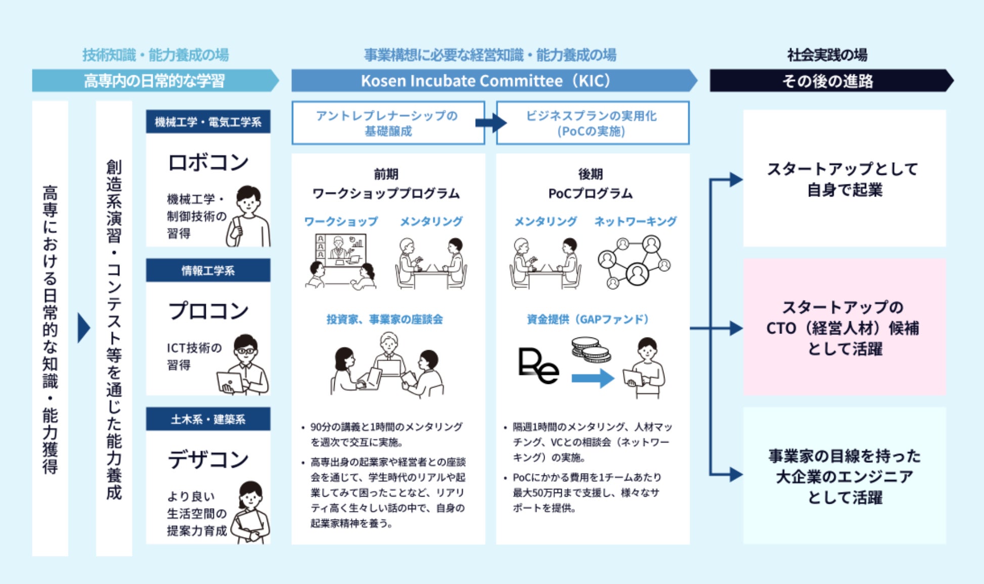 弊社はKICを通じて、起業家やスタートアップ、経営人財として重要なアントレプレナーシップを醸成し、全国の高専生のキャリア形成につなげていきます。
