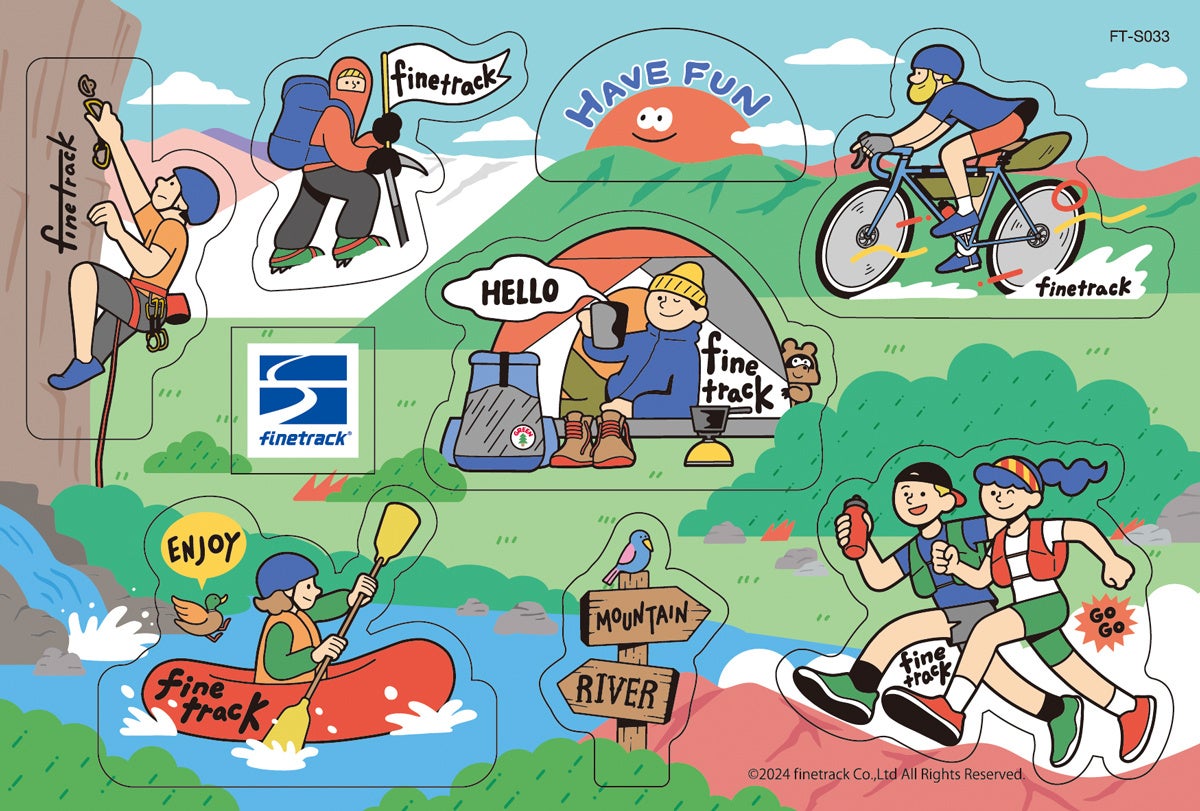 自身もトレイルランナーで遊び手でもあるイラストレーターのHisae Sasakiさんがデザインしたオリジナルイラストステッカー。finetrack創業20周年の節目の年に、遊び手の皆様が様々なアクティビティを楽しむ姿をイメージして作成いたしました。アクティビティごとに剥がせる型抜きタイプ。屋外でもご利用いただけるよう、耐候性・耐水性があり破れにくいユポタックにラミネート加工を施しています。