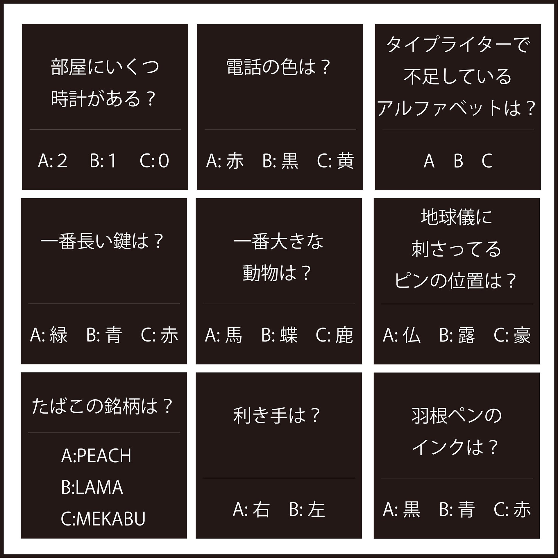 今回の謎解きの目的は「得体の知れないAIの暴走を止めること」です。そのために「事件の被害者が誰なのか、犯人は誰なのか」を突きとめていきます。客室の設定は、「行方不明となった探偵の事務所」。物語の主人公である“特殊捜査チームの捜査官”が、連絡が途絶えたはずの探偵からのメッセージを受け、訪れる場所です。探偵の嗜好品であろうたばこやワインが置かれたままの室内には、血痕や足跡など、残忍な出来事がおこったことが推測される痕跡が残り、古びたモニター、何かを読み解いていた地図、ウッドブロックで作られたカレンダー、鍵のかかったキーボックスなどが散在しています。どのような事件が発生し、被害者は、そして犯人は誰なのかを解き明かすため、主人公となった宿泊者は特殊捜査チームの捜査官として、これらの「証拠品」であるアイテムを現場鑑定し、調査するために触れるなどのリアルなアクションをすることで、物語へ深く没入することでしょう。スマートフォンで1問回答するごとに近づく真相、随所に織り込まれた動画視聴が物語を発展させ、臨場感を演出します。
