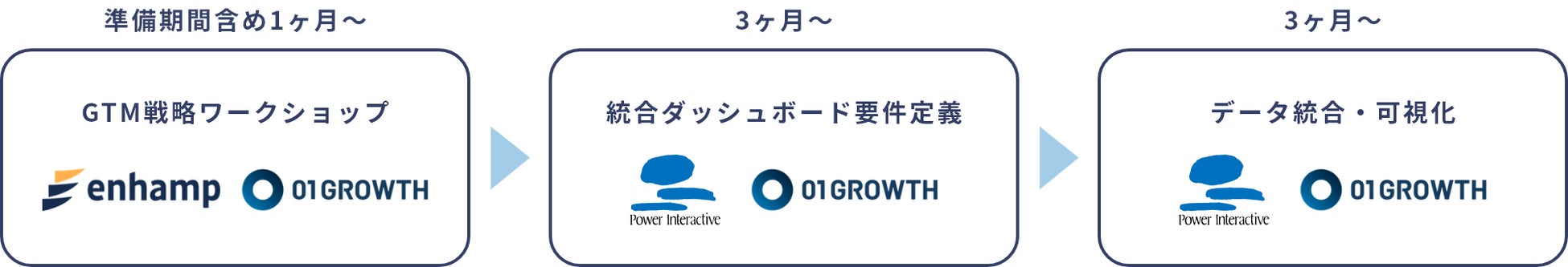 本サービスでは、ゼロワングロース及びエンハンプ、パワー・インタラクティブがそれぞれの専門性を活かし、パートナーシップを組んでこのプロジェクトを推進します。