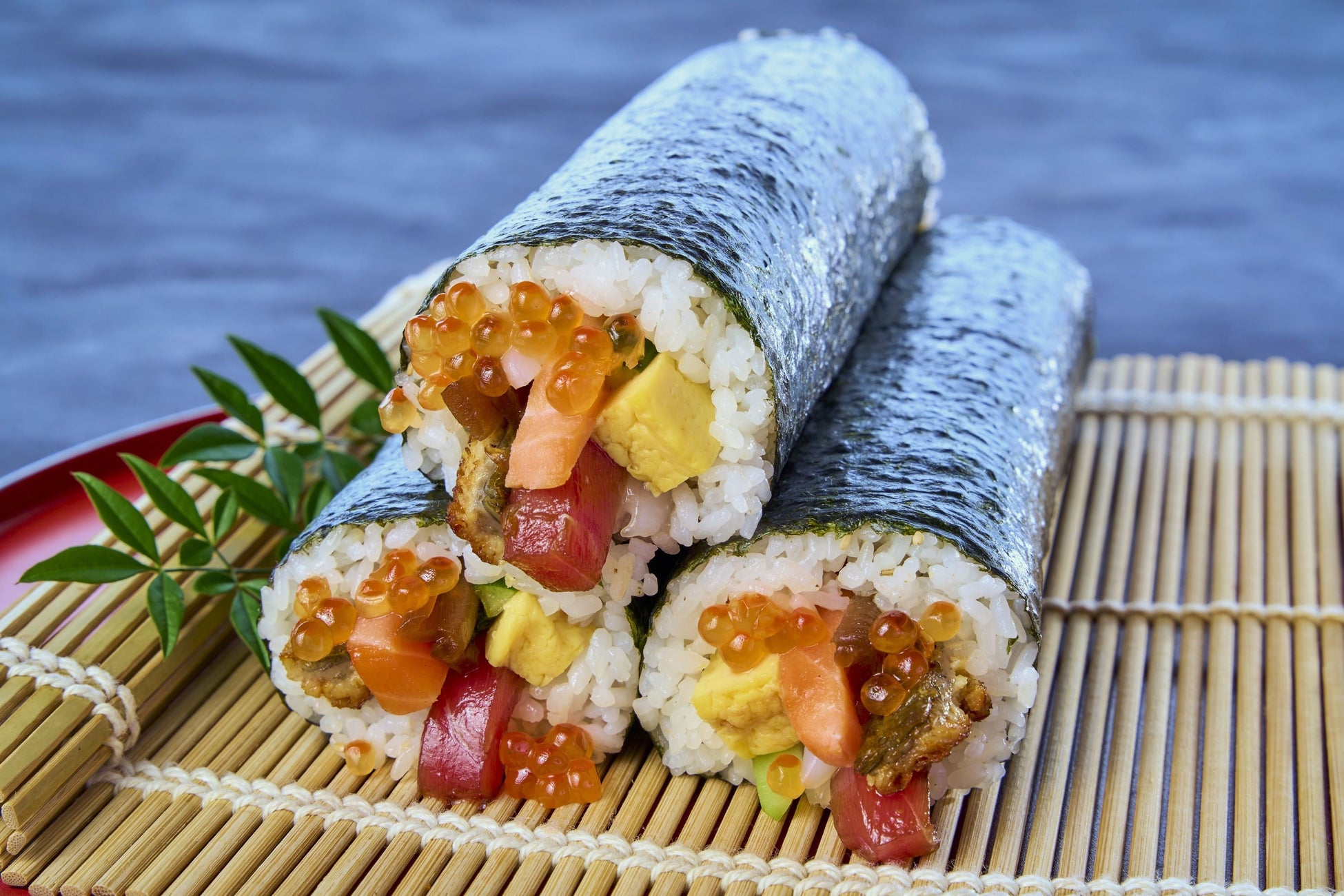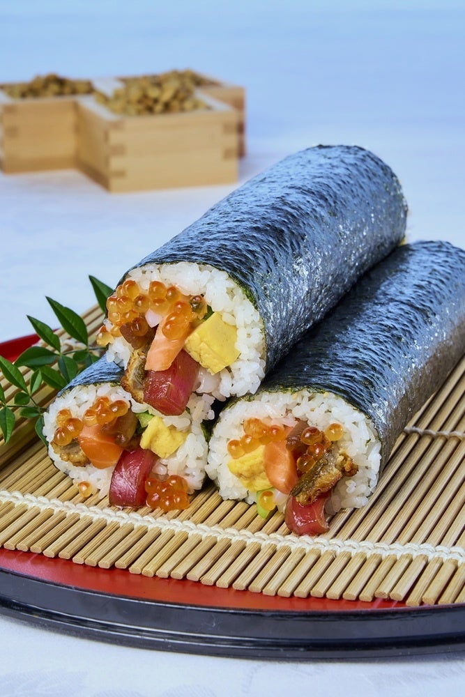 〈具材〉漬けまぐろ、うなぎ、酢〆サーモン、いくら醤油漬け、甘えび、厚焼き玉子、きゅうり、大葉、かんぴょう